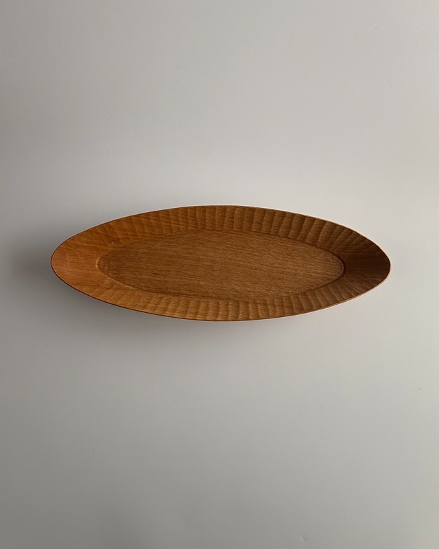 木々には癒しの力がある、と堀さん。 そんな木のうつわを生活に取り入れて 穏やかで豊かな日々を楽しんでほしいという想いを込めて 制作されています。 毎日使ってほしいからこそ、デザインは極力シンプルに。 それでいて手仕事を思わせる丁寧な彫目は 作り手の想いが感じられ、より一層味わい深い作品と なっています。 素材:チェリー サイズ:幅約42×長さ約190mm ・手作りのため、一点ごとに形状、色味など個体差がございます。 サイズ表記は目安としてお買い求め下さい。 ・HP掲載の作品は、撮影時の光の当たり具合やモニターによって色の見え方が実際と多少異なることがございます。 [ 日々のお手入れ ] ・洗ったあとは水気を拭き取り、よく乾かしてからおしまいください。 ・つけおき、漂白剤、食洗機、電子レンジのご使用はお控えください。 ・表面が乾燥してかさついてきたら、荏胡麻油などの植物性油などを薄く塗っていただくと 美しい艶やかな姿に戻ります。 【 堀宏治 -hori kouji- 】 1974 長崎県生まれ 2005 鎌倉へ移住 2006 無垢の木材を使ったテーブルウェアを制作、販売開始 2017 故郷である長崎県佐世保市にUターン アトリエを構える 大自然が育んだ広葉樹の木材を主に用いた作品を数多く 制作している