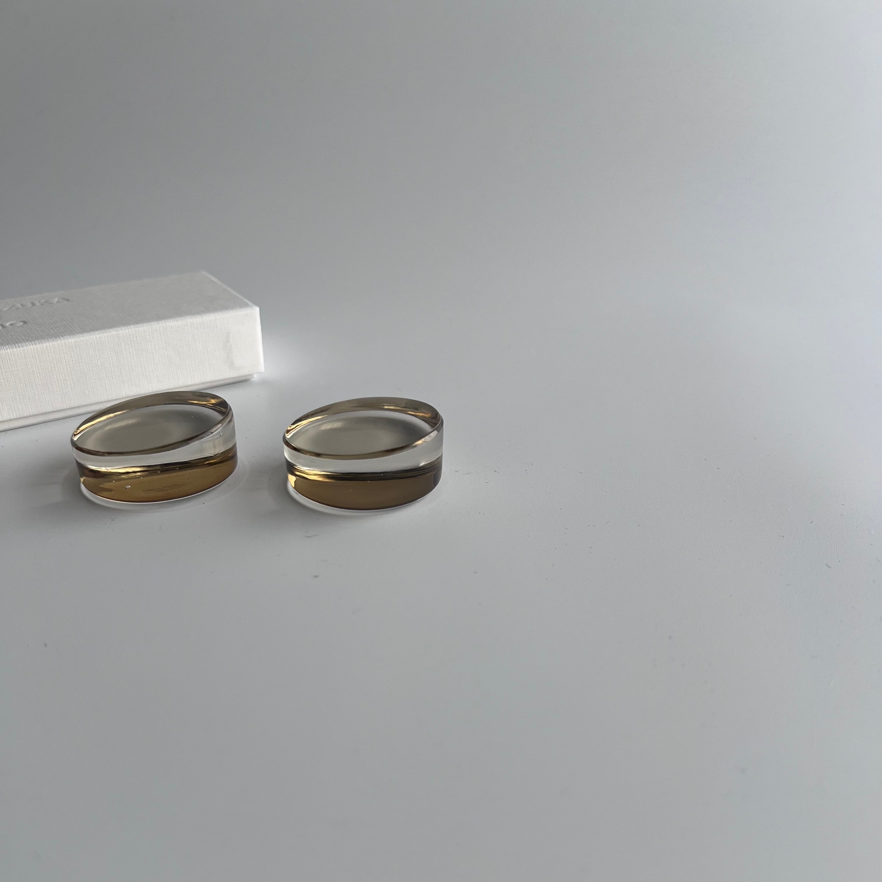 「clear」は底面を炎で焼成することで、ほんのりと黄色くなっています。シャンパンゴールドのような、なんとも言えない美しさ。